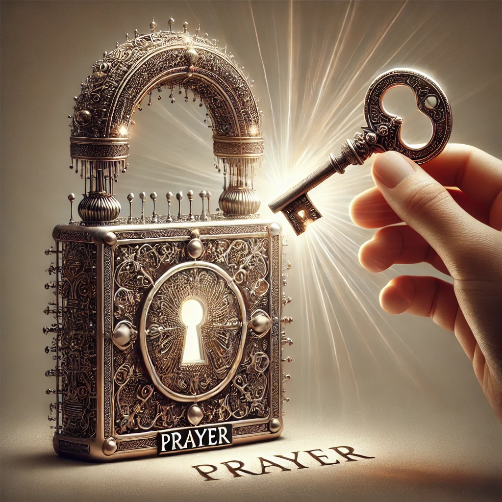 위의 이미지는 챗gpt로 그린 그림이며, 기도는 하나님의 능력을 경험하는 열쇠로  자물쇠를 여는 키처럼 기도는 문제를 해결하는 열쇠라는 의미를 가지고 있다.