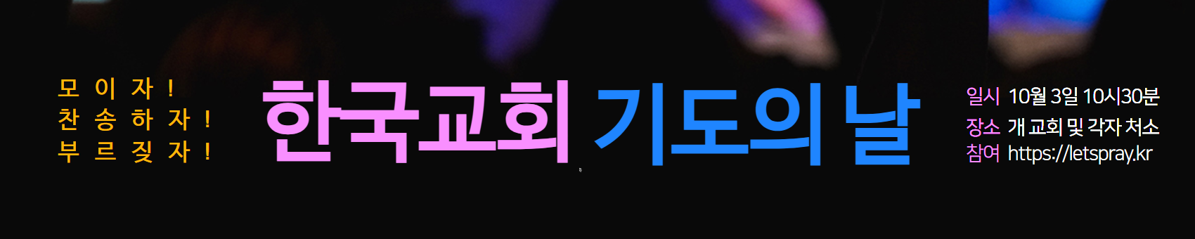 다행히 이런 위기감을 느끼고 한국교회가 이곳저곳에서 마음을 찢는 기도를 하려고 한다. 10월 3일에는 안양의 은혜와진리교회(조용목 목사)에서 동성애와 차별금지법, 마약과 중독 문제를 극복하고 코비드19로 무너진 교회 역할과 회복을 위한 기도회를 개최한다.
