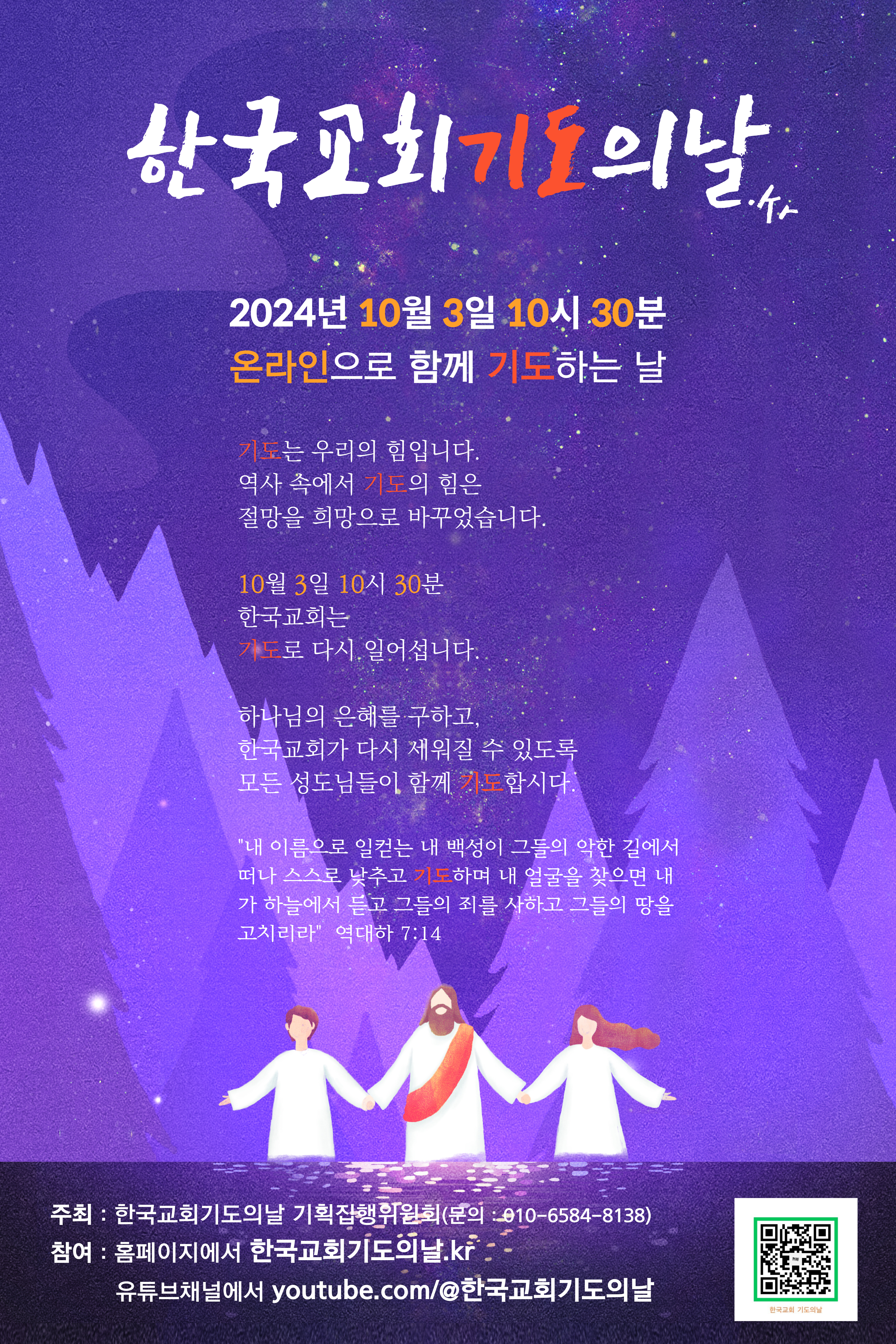 제2회 한국교회기도의날 기도회에 동참하신 여러분, 현재 우리나라와 교회가 직면한 위기와 문제들을 이러한 성경말씀에 의거하여 하나님께 호소하고 도와 주심을 전심으로 간구하십시다.
